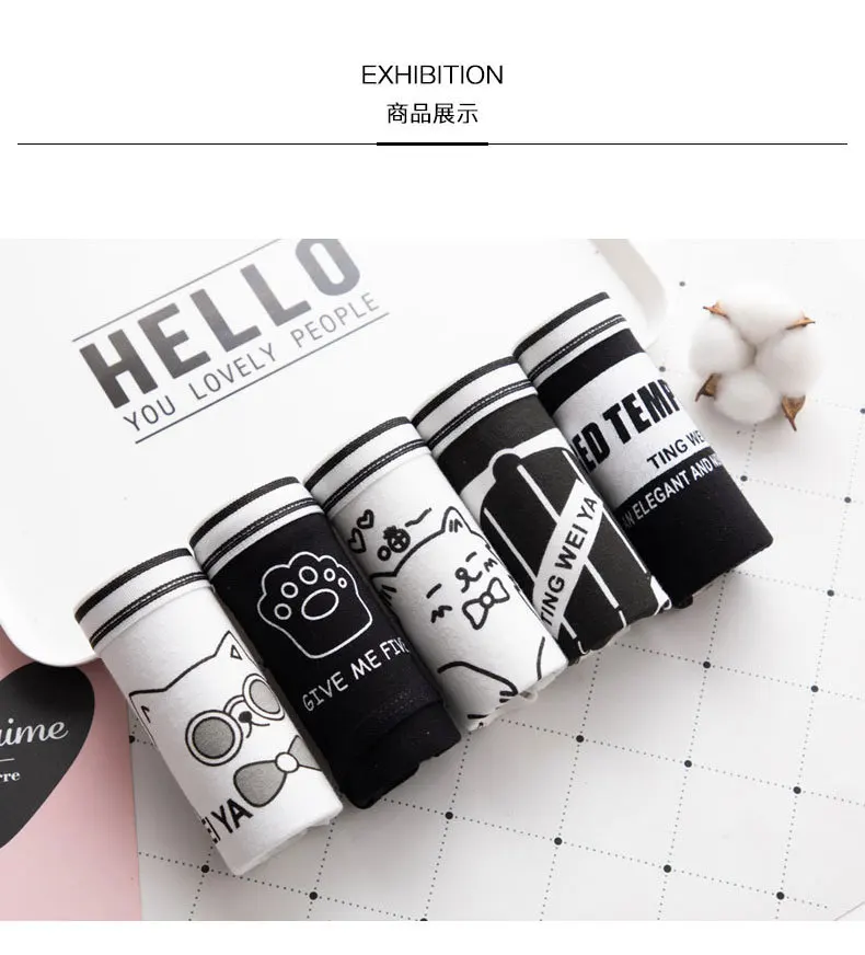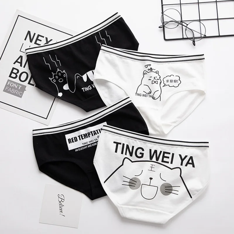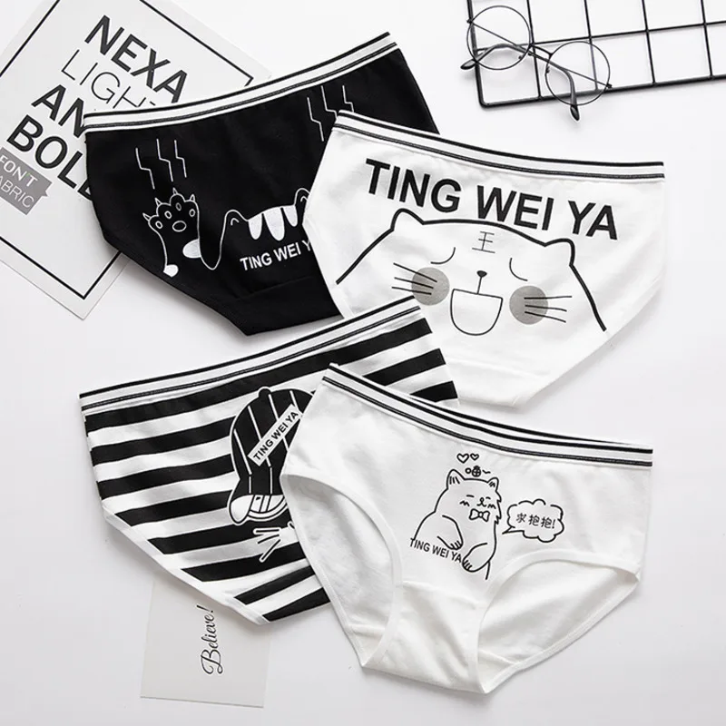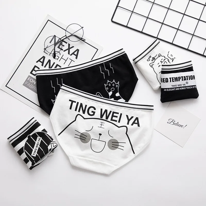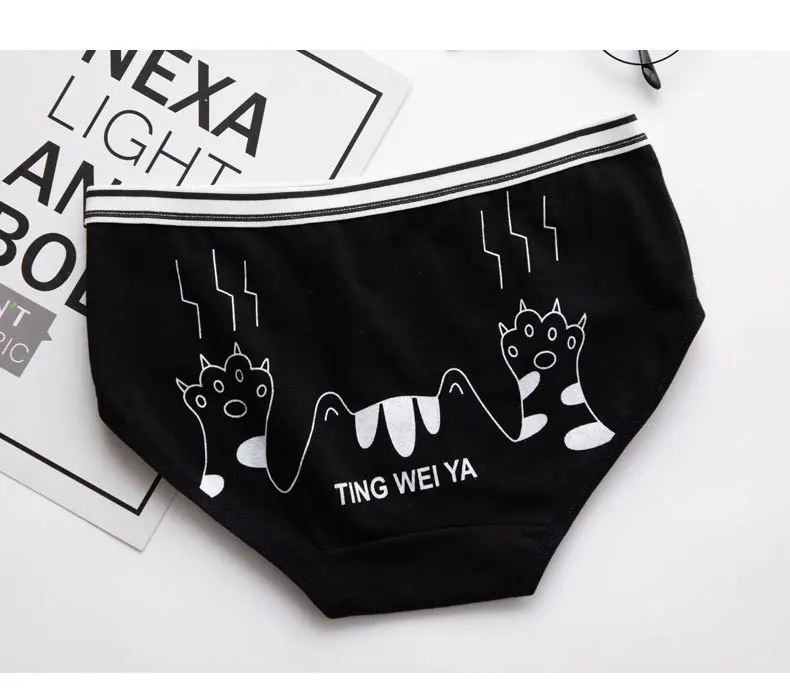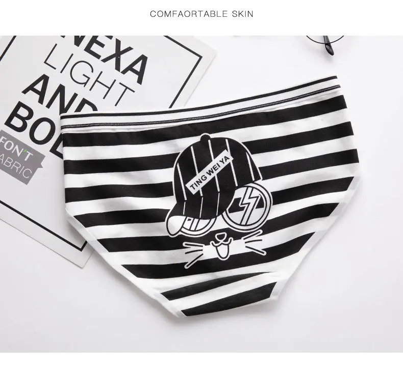 Трусики женские SP CITY, хлопковые бесшовные, со средней посадкой, черные, белые, с мультяшным котом