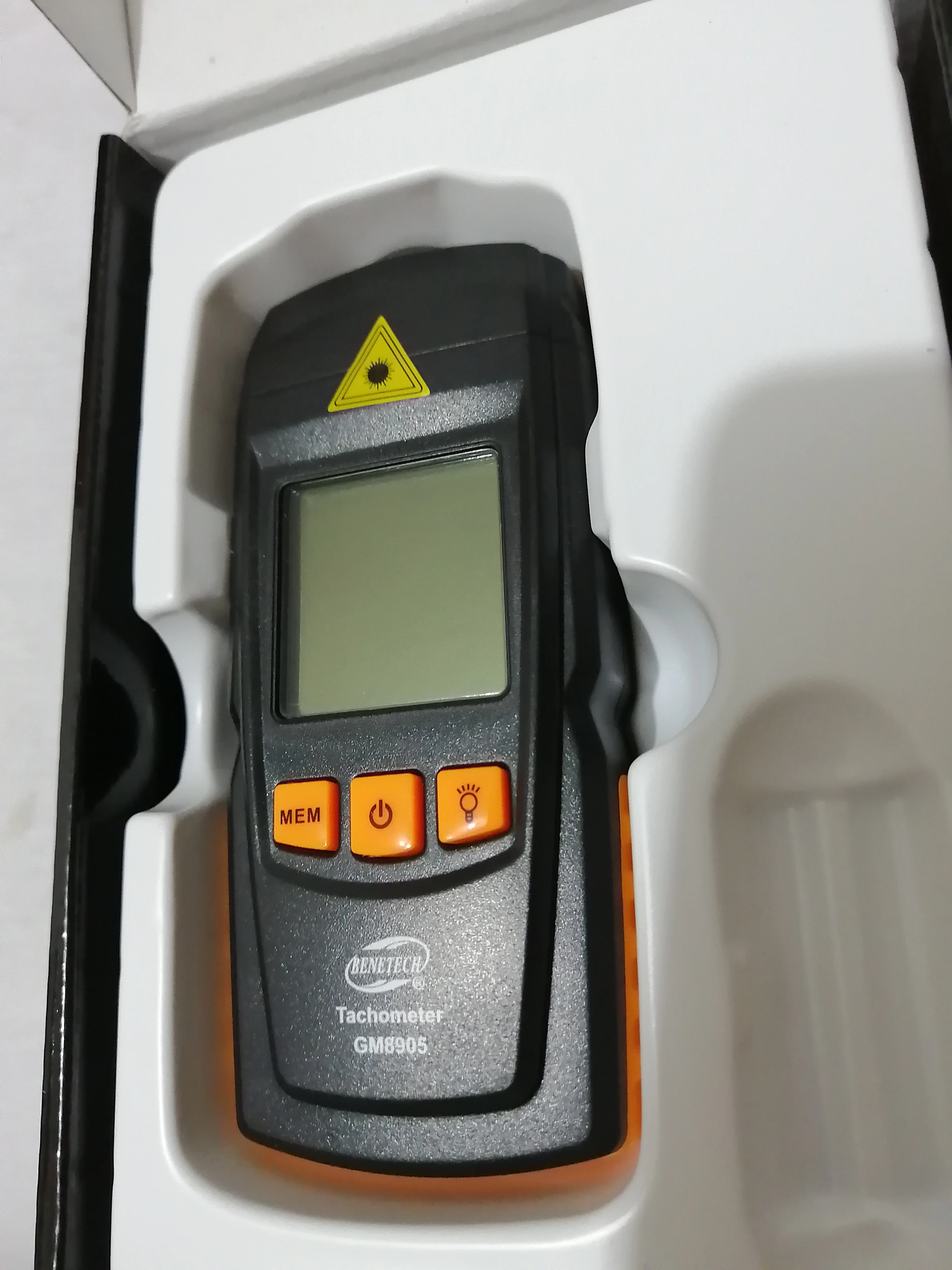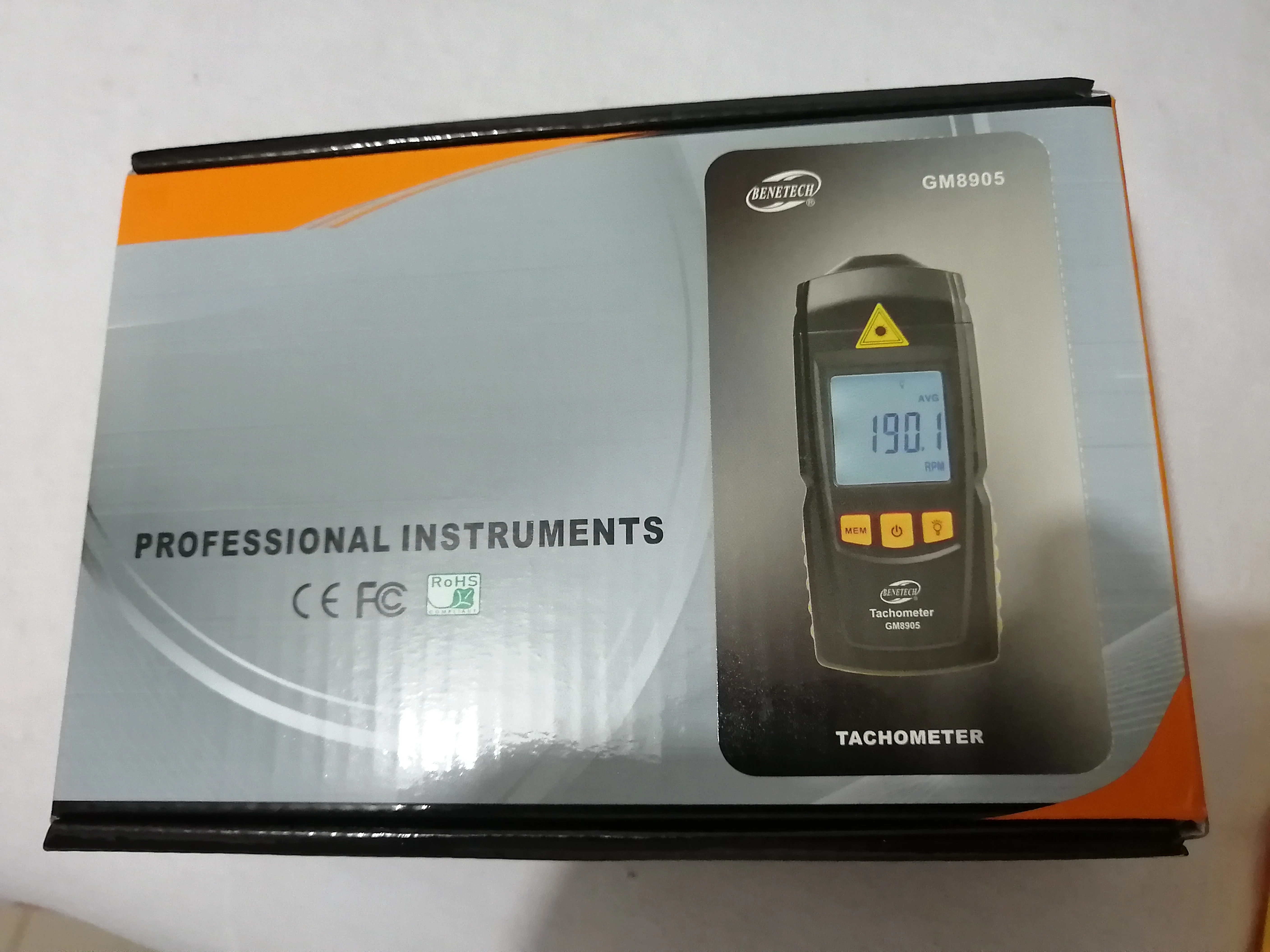 Пришел в течении 14 дней после оплаты. Хорошее качество изготовления. Проверил, работает показания очень похожи на правду. Проверял скорость вращения шуруповерта и болгарки