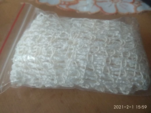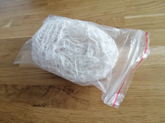 Заказ от 12января, получила 2 февраля. Уже испробовала в деле. Раньше никогда не готовила с сетке. Приготовила куринный рулет. Сетку натягивала с помощью обрезанной пластиковой бутылки. В диаметре сетка небольшая, с очень большим трудом налезла на двухлитровую бутылку. Но все равно получилось отлично.