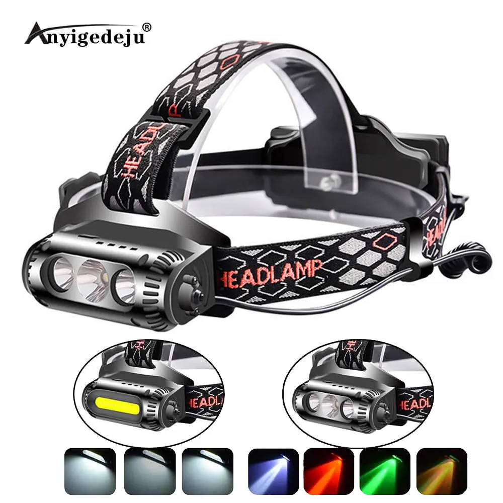 ANYIGE USB Перезаряжаемый светодиодный налобный фонарь вращающийся держатель лампы 8 режимов освесветильник LED COB сверхъяркий налобный фонарь использовать 18650 зеленыйкрасныйбелый