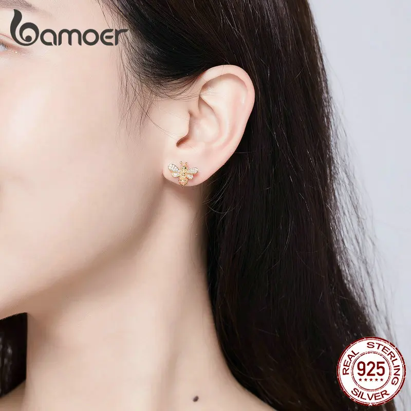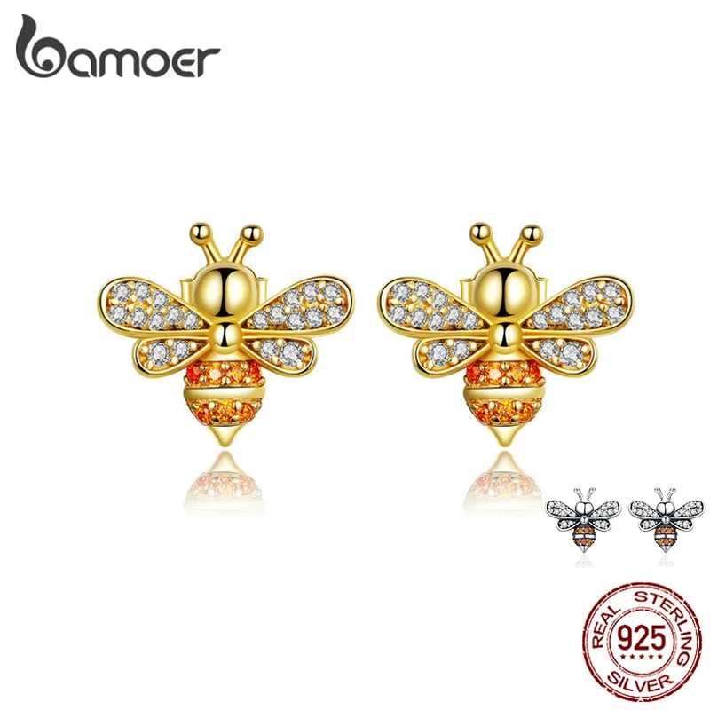 Женские серьги-гвоздики с кристаллами BAMOER Baby, ювелирное изделие из стерлингового серебра гвоздики Пчелка пробы, антиаллергенные SCE344, 925