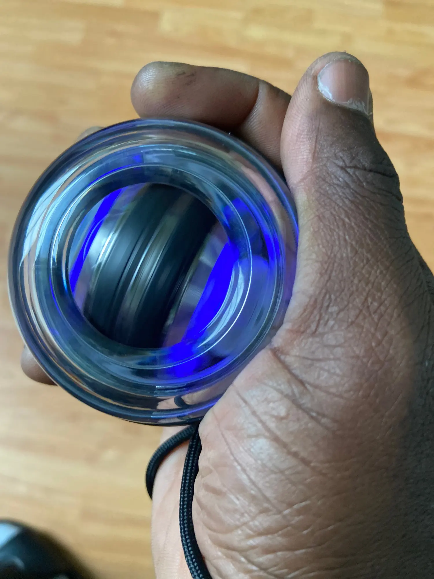 дошёл быстро, шарик как в описании. а вот придрочиться его крутить не просто. Но в натуре качает кисть и руку