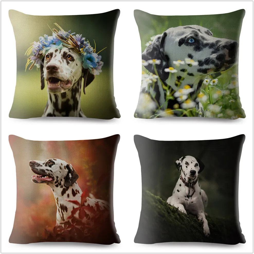 Симпатичные далматинские подушки для домашних животных бежевые льняные наволочки 45*45 квадратные подушки для дивана