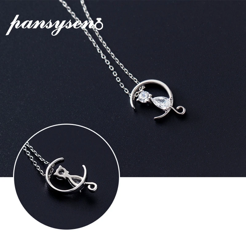 Женское Ожерелье из чистого серебра 925 пробы PANSYSEN, маленькие ожерелья-чокеры, изящная бижутерия, Очаровательная подвеска котенок пробы