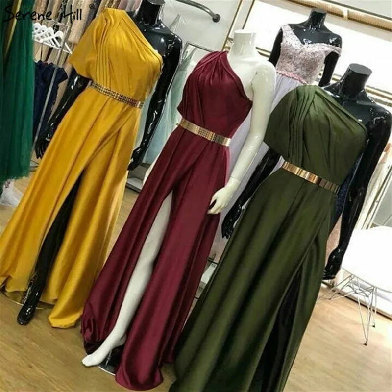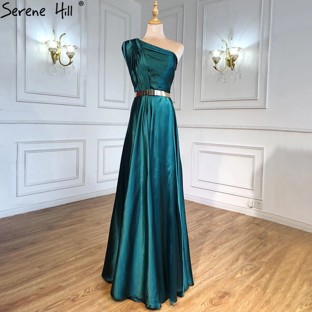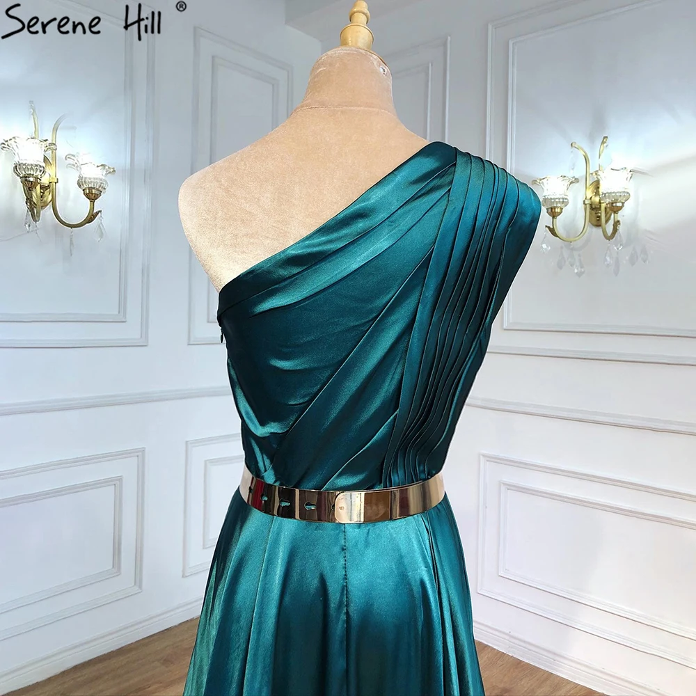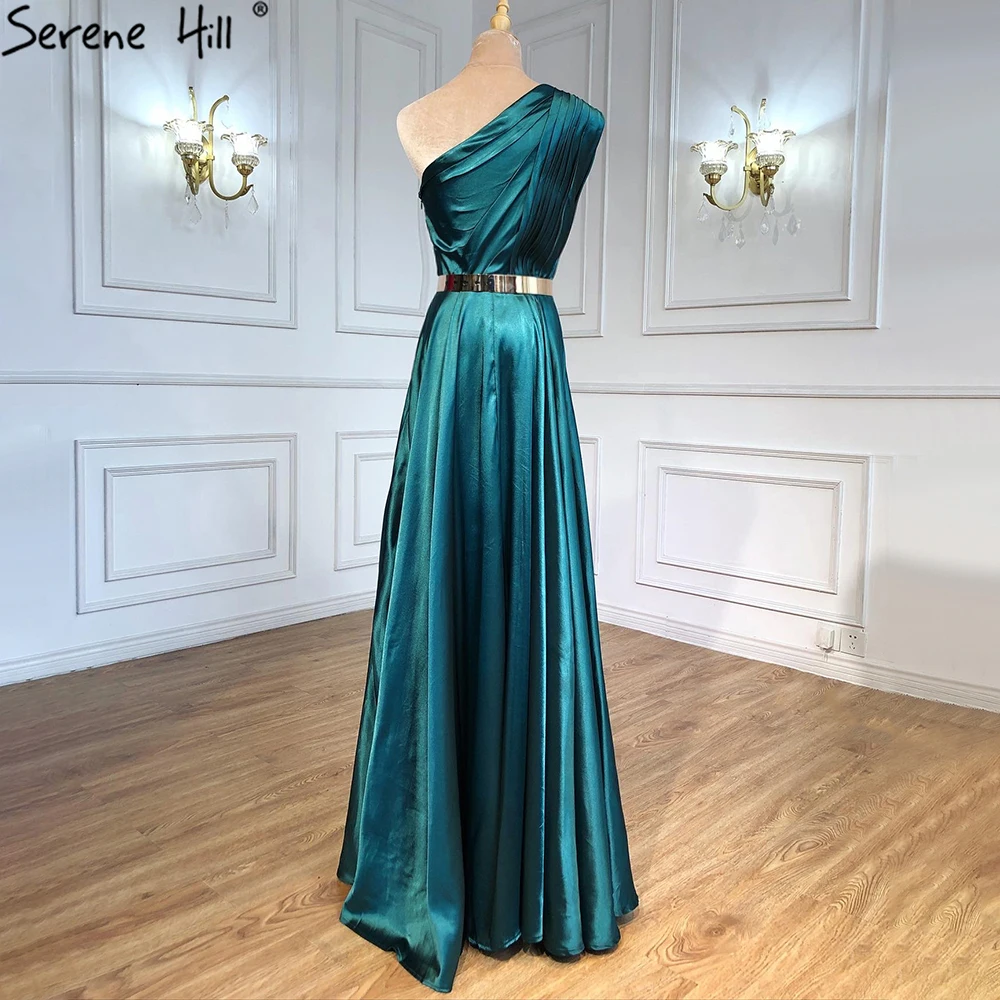 Мягкие атласные Зеленые Вечерние платья с одним плечом А-силуэта 2021, простое сексуальное торжественное платье Serene Hill HA2231