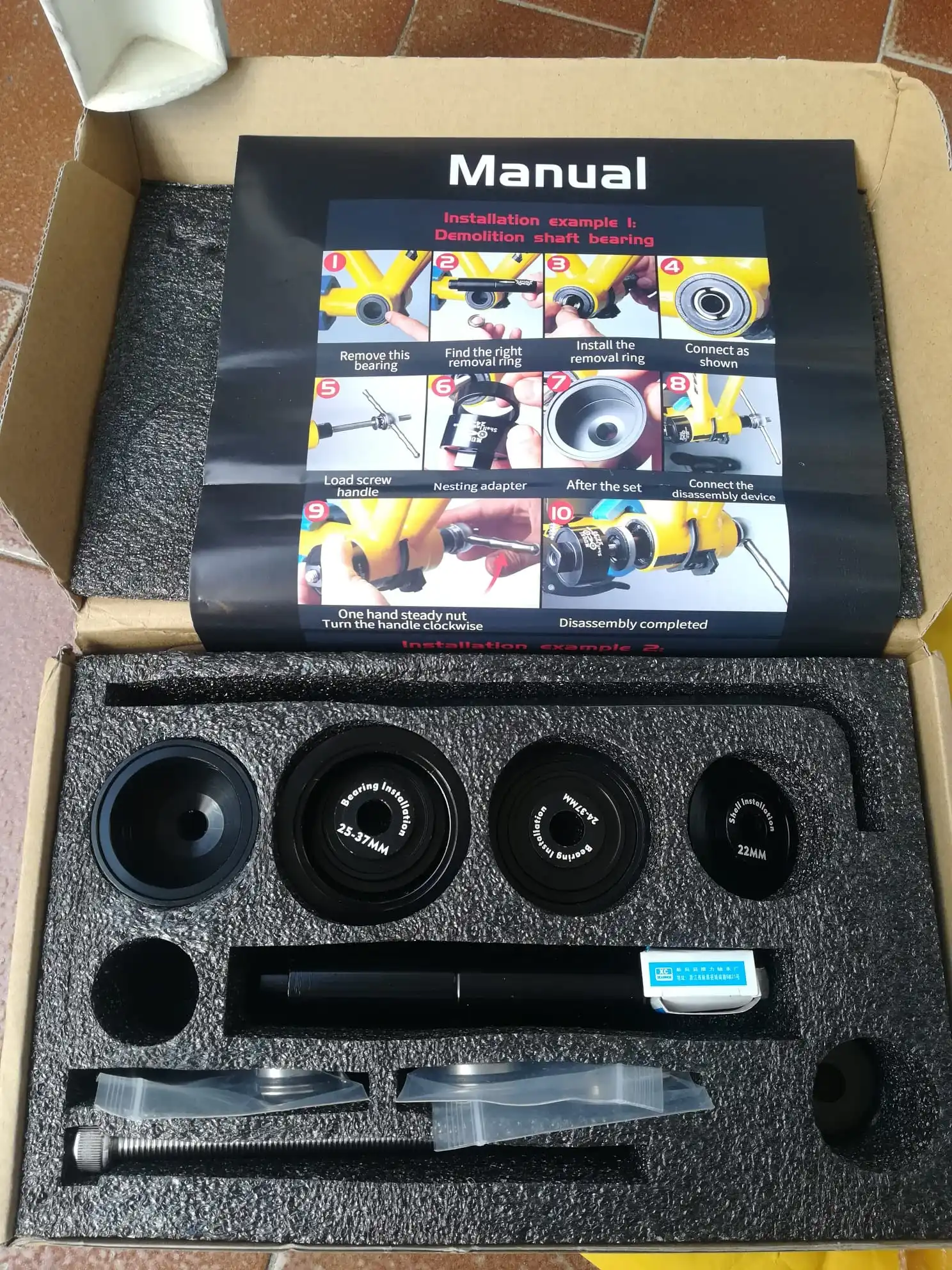 Мне потребилось некоторое время, чтобы написать, потому что я хотел попробовать сначала. Настоятельно рекомендуемый инструмент, он имеет все, что вам нужно, чтобы изменить пресс, подходящий MT800 92 мм (Shimano XT). Простой в использовании, хотя в первый раз будьте внимательны.