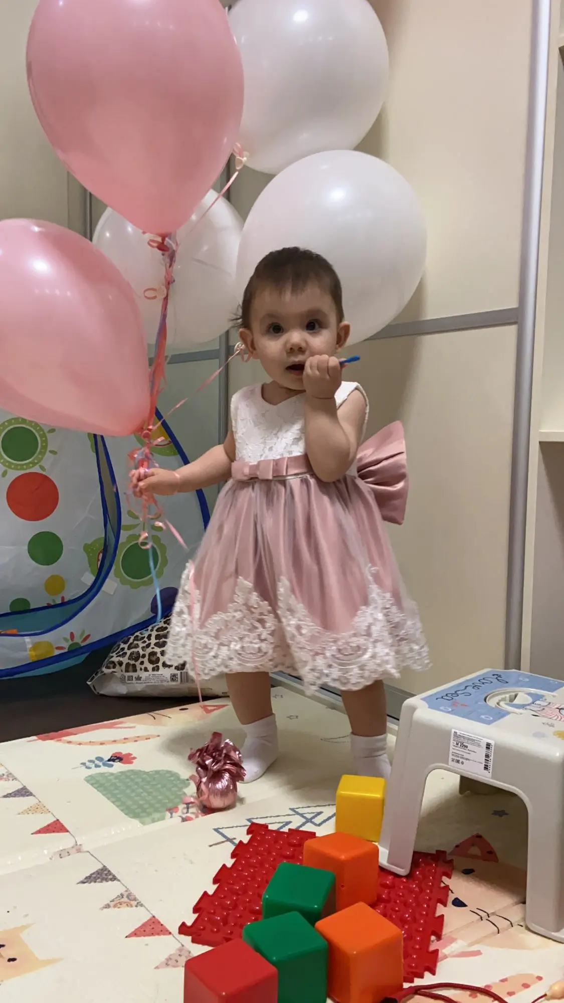 очень классное платье, нежно-розового цвета, чуть ниже колен, в размер) брала дочке на 2 годика, идеально будет на день рождения) бантик в зале чуток надо пришить будет, что бы красивее было)