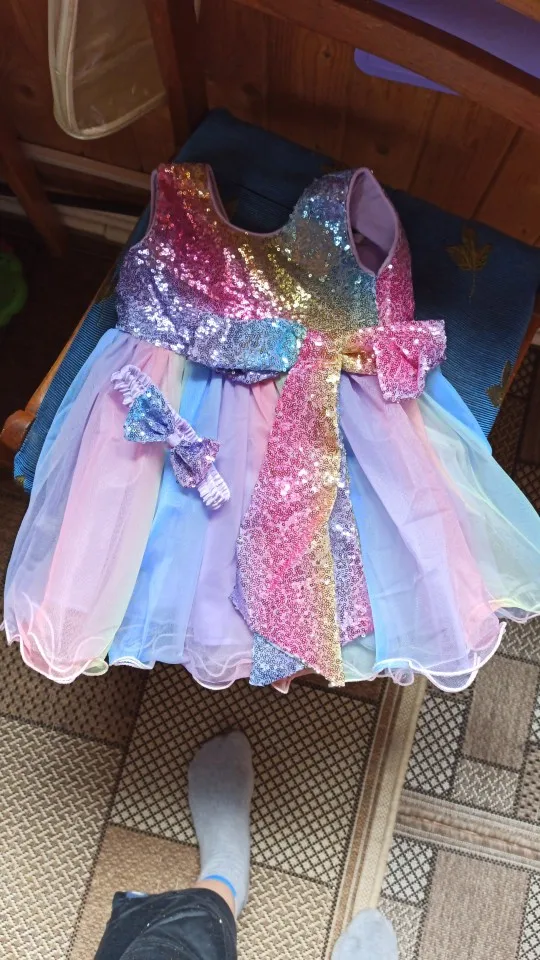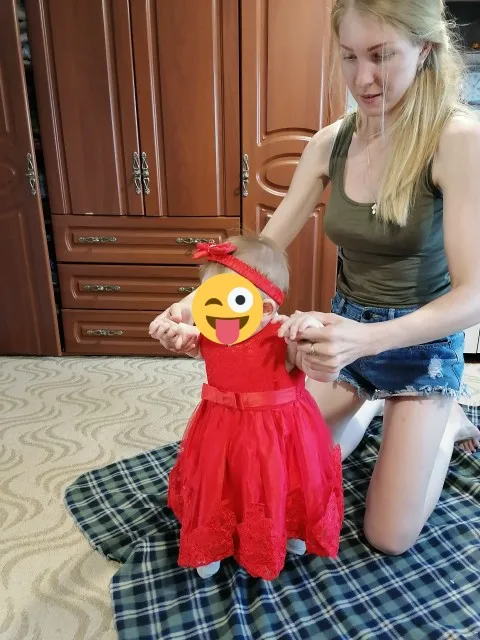 Платье для настроящей принцессы. Размер платья выбирала на 18 месяцев, хотя дочке только 9 месяцев. Платье велико, доченьке на первый день рождения точно наденем. Изначально планировалось платье на новый год, поэтому сделала заказ по большинству отзывов, так в отзывах говорили о том что размер 18 месяцев подходит на 9 месяцев. Нам оказалось велико, все таки все детки разные. В общем платьем довольна,без запаха,качество ткани хорошее. Заказывайте не бойтесь, не пожалеете!