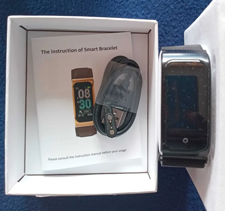 Хороший браслет. Понравился. Подключился через приложение H BAND к смартфону легко. Датчики считают давление и пульс в соответствии с обычным тонометром. Пульс, если не переключать можно отслеживать в процессе тренировки. Приятный ремешок. В комплекте зарядный шнур и инструкция. Рекомендую.