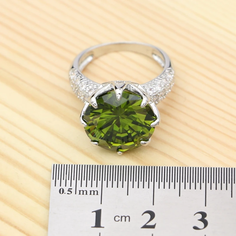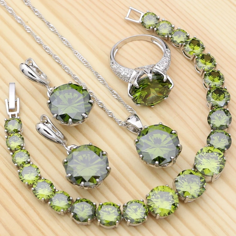 Набор ювелирных изделий из серебра 925 пробы для женщин оливковый зеленый кубический цирконий белый кристалл кольцо браслет ожерелье подвеска серьги