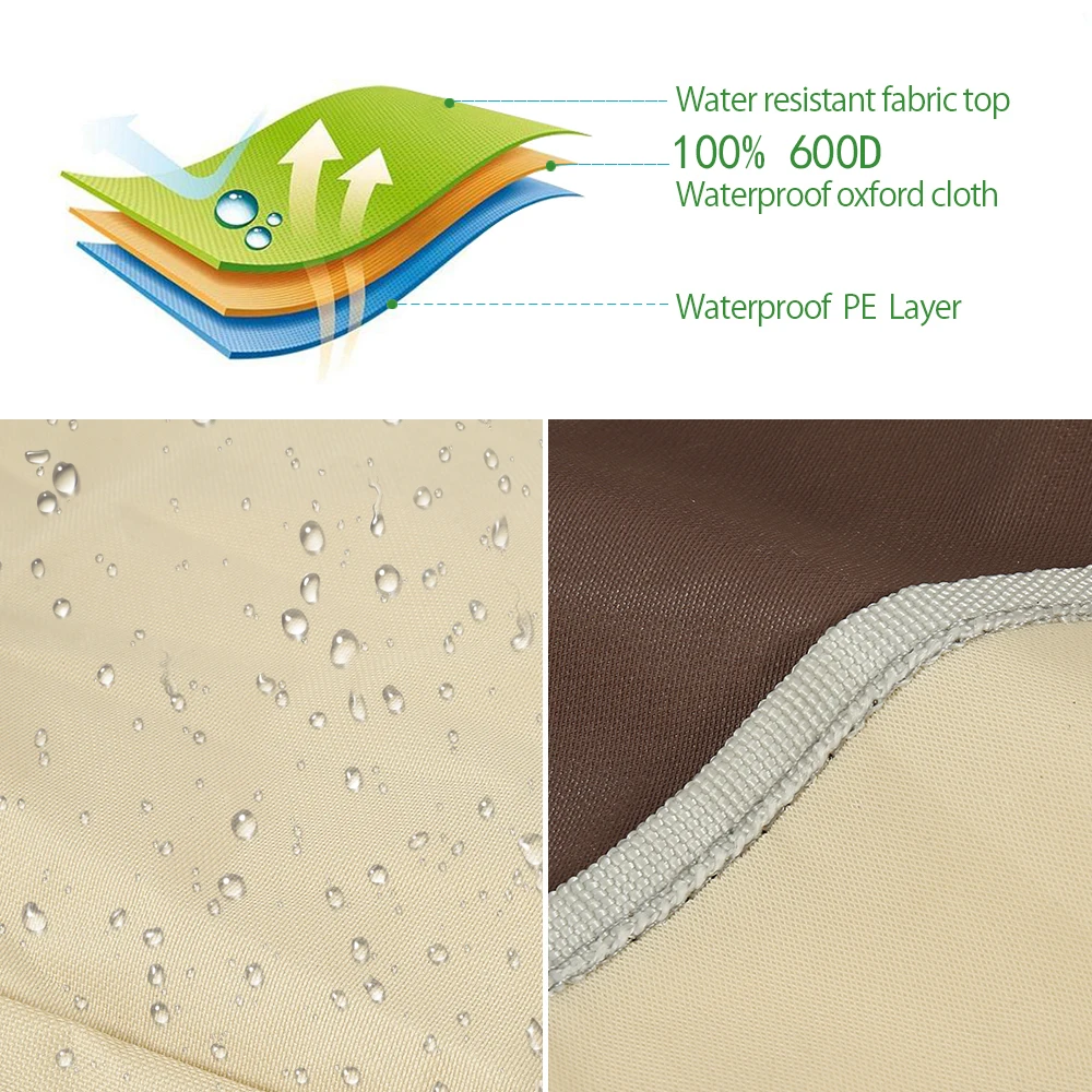 Прочная ткань Оксфорд и водонепроницаемая подложка защищают кресло от дождя, шторма, града, солнца и грязи.