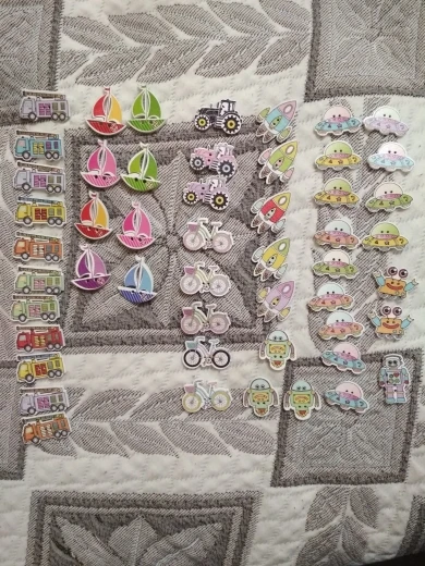 Прекрасные пуговки. количество точное,картинки разнообразные,но брака нет и очень хорошее качество.