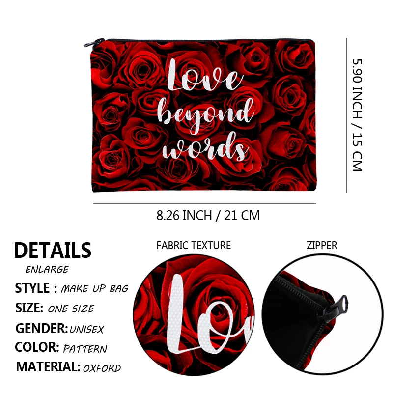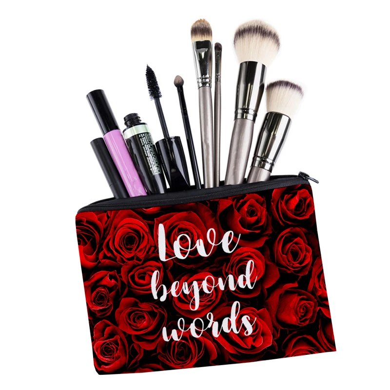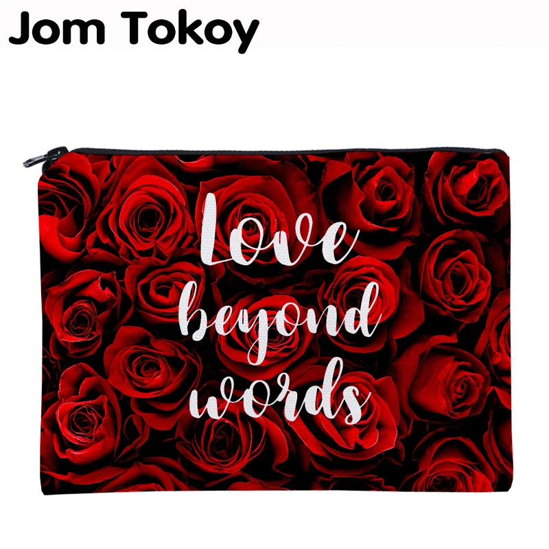 Сумка-Органайзер Jom Tokoy, с принтом красных роз, для путешествий, Женская квадратная косметичка с надписью и молнией