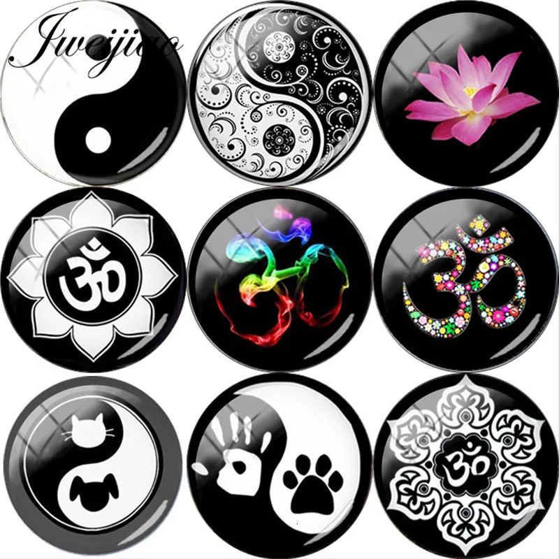 JWEIJIAO Инь-Янь, символы для йоги, сделай сам, стеклянный кабошон, купол, время невесты, драгоценные камни, демонстрация, плоская спина, фурнитура для изготовления 5 шт.Лот, Прямая поставка