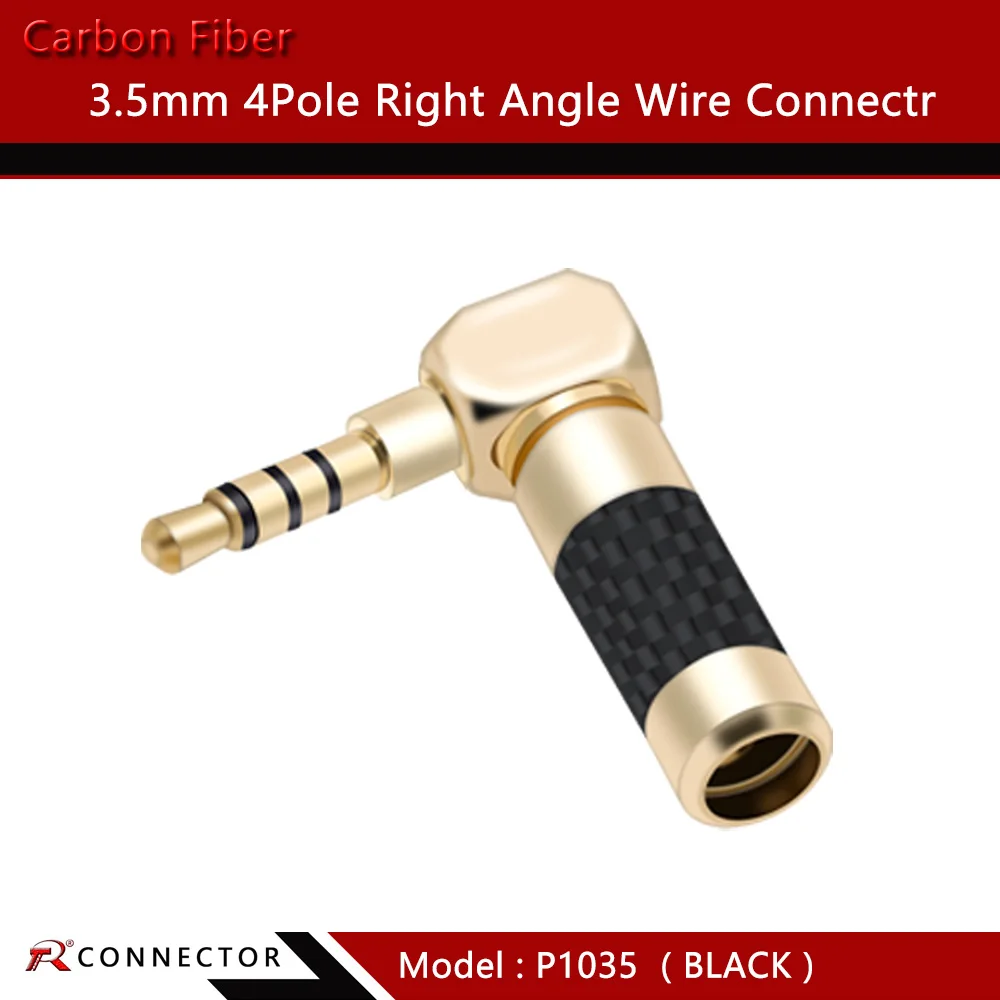1 шт. гнездо для наушников из углеродного волокна 3,5 мм 4-полюсный Прямоугольный штекер позолоченный провод паяльный разъем для наушников DIY 6 мм кабель