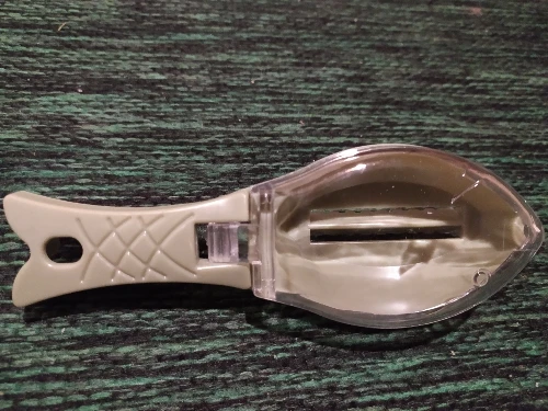 понравилось что не летит во все стороны чешуя во время чистки, но в контейнере тоже не собирается, если чистить с водой то и вовсе вся вымывается и засоряет слив раковины