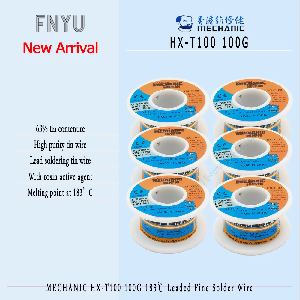 Припой серии MECHANIC HX-T100, 100g, 0,30,40,60,81,01,2 мм, высокочистый, с низкой температурой плавления, для телефонов, компьютеров