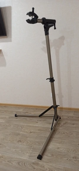 Отличная стойка, хорошо держит, в сложенном состоянии помещается в шкаф, удобно в квартире. Продавец докинул красивые колпачки на ниппели и топкэп, спасибо за подарок :)