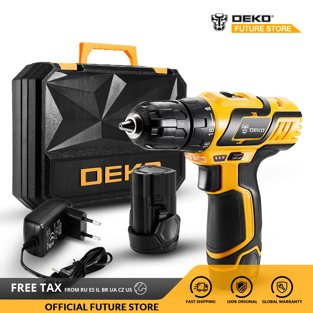 Аккумуляторная дрель DEKO GCD10.8DU3 10,8 В, электрическая отвертка, литий-ионный мини-драйвер мощности, переменная скорость, 18 + 1 настройки, 38 дюйма