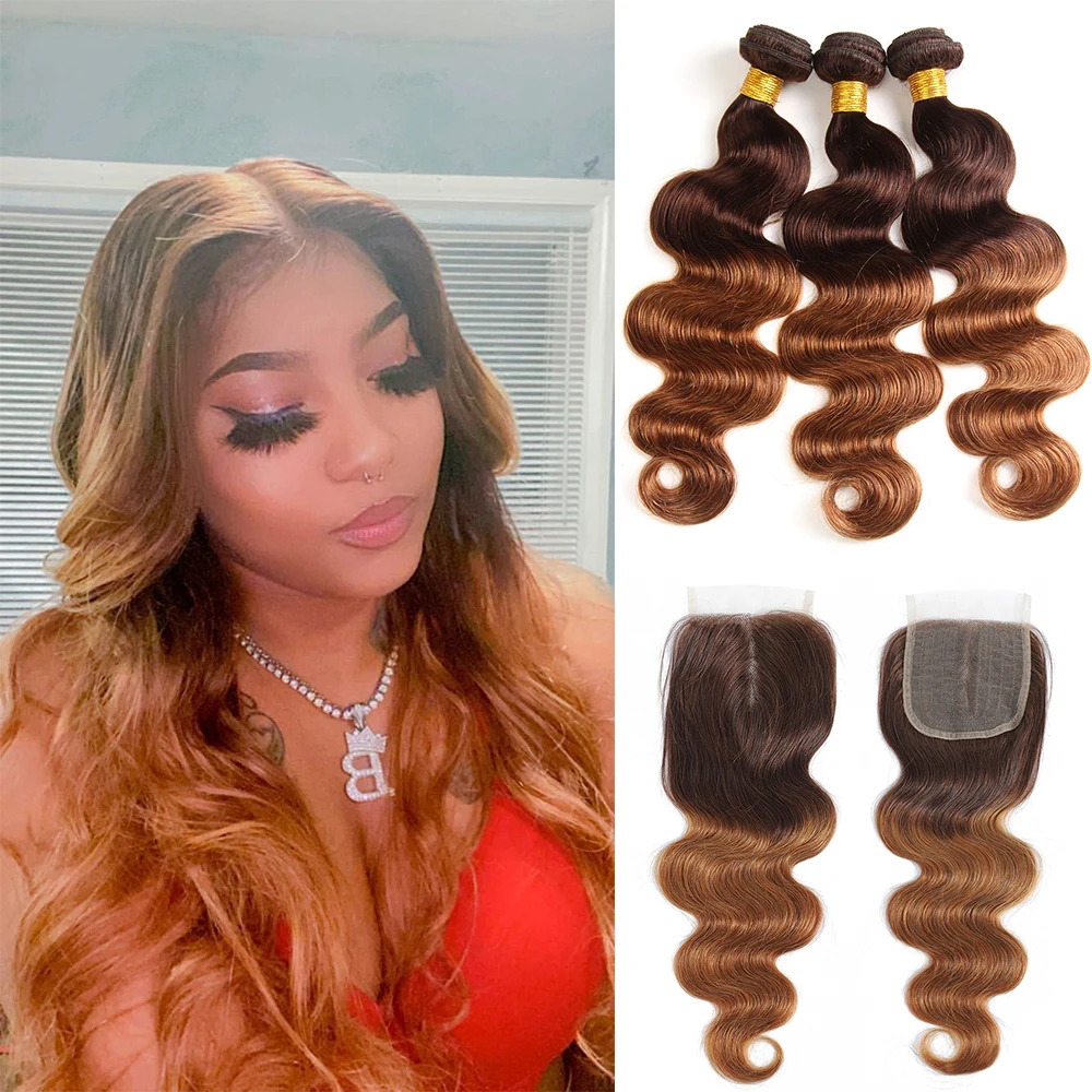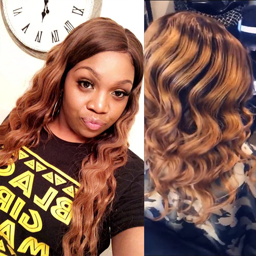 Цветные волнистые человеческие волосы, пучки с застежкой, коричневые перуанские человеческие волосы Remy, волнистые волосы с эффектом омбре, пряди застежкой T-образной формы