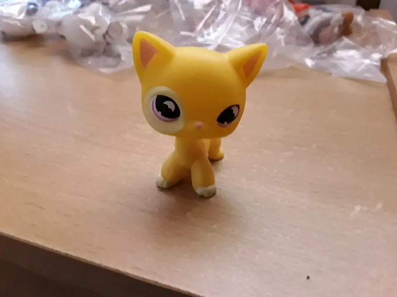 LPS редкая маленькая кошка из зоомагазина, игрушки, кошка с короткой шерстью #855, оранжевая желтая кошка с фиолетовыми лунными глазами, фигурки с брызгами, подарки для детей