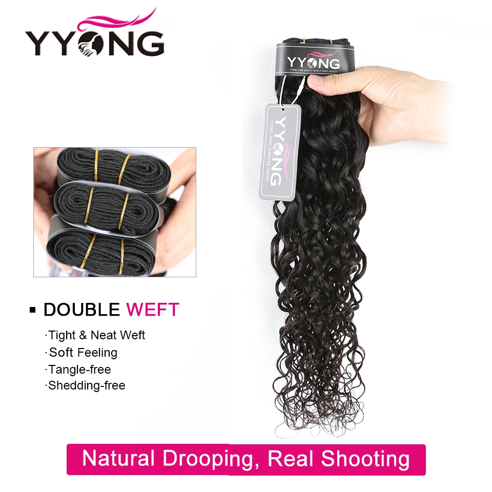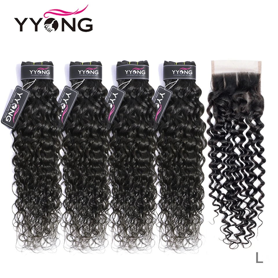 Yyong 34 волнистые пучки с застежкой, бразильские пупряди волос с застежкой, человеческие волосы с застежкой, среднее соотношение Реми