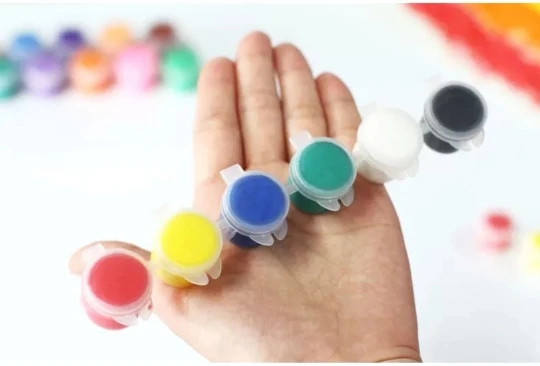 В комплекте 2 кисти и крепления, краски яркие, но баночки не полные.