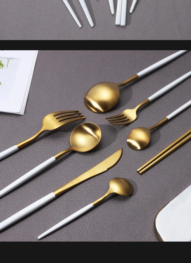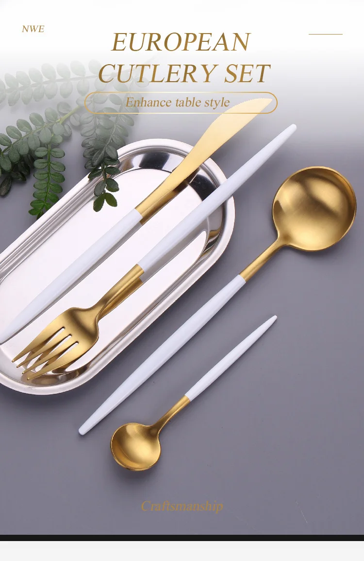 Набор столовых приборов из нержавеющей стали 1810, из белого золота, в западном стиле, домашняя ложка, вилка, нож набор палочек для еды, наборы столовой посуды