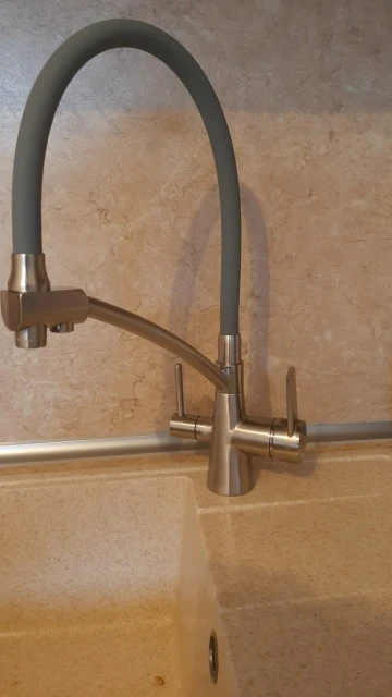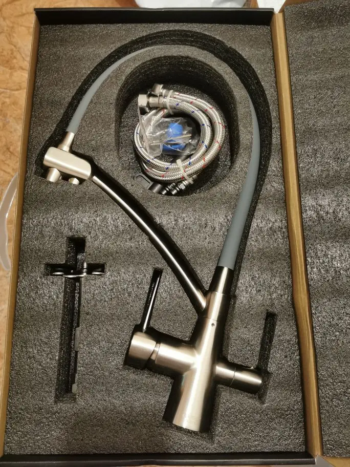 Взяли уже второй такой смеситель, один поставили себе, второй чёрных год купили для квартиры родителей. Отличный гибкий излив, удобно мыть раковину и крупные предметы. Хорошее покрытие, незаметно следы, почти не остаётся грязь. Второй кран для питьевой воды из фильтра. Доставка в Москву быстрая, дня 3 или 4 в новогодние праздники.