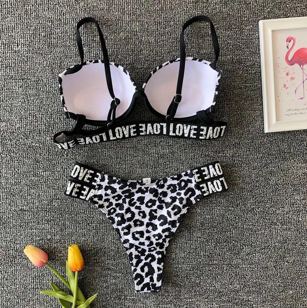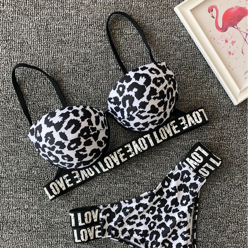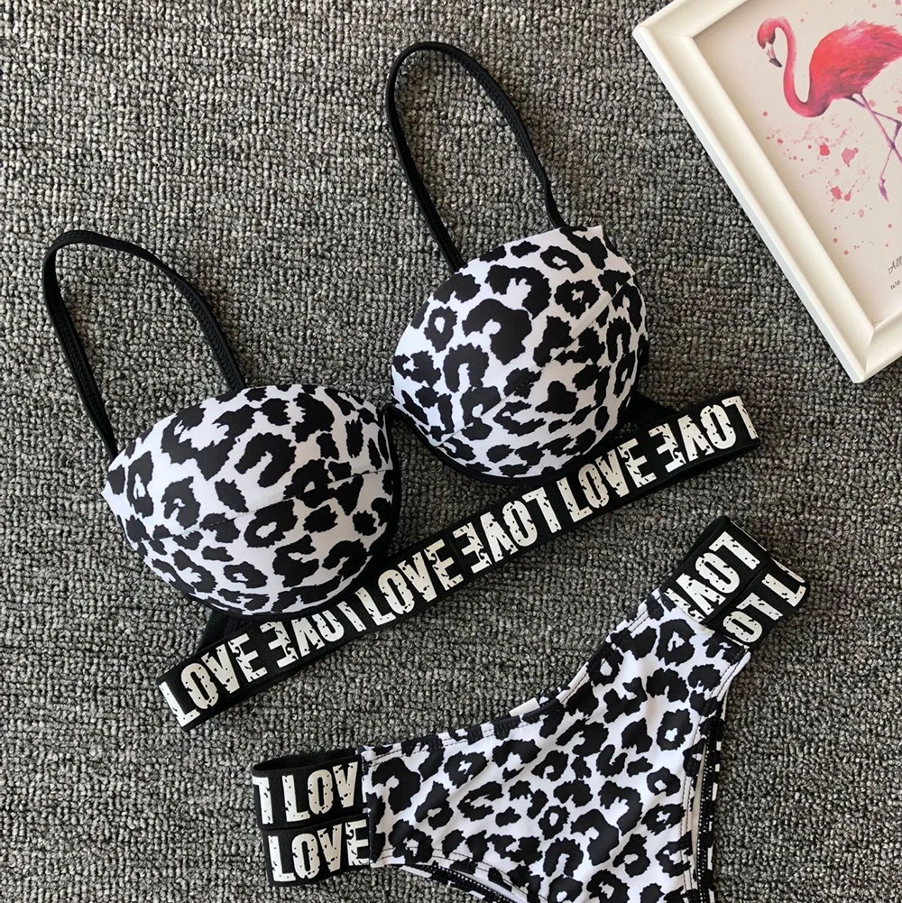 Сексуальное Белое Бикини с леопардовым принтом, новый женский купальник, женские купальники, купальные костюмы с низкой талией, набор Пуш-ап бикини