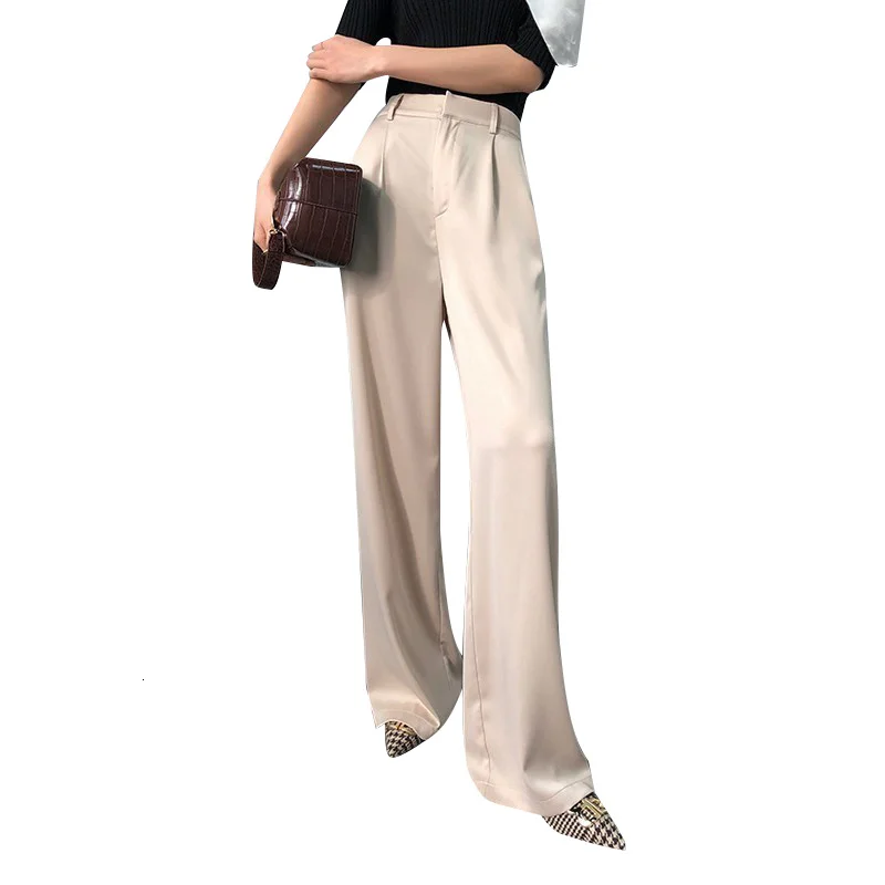 Брюки очень хорошие. Ткань под шёлк. Тяжёлые. Но, мнутся быстро. При ходьбе образуются заломы. На фото не видно, но на самом деле очень широкие. Нитки не торчат. Себе на размер 42-44 заказала м, оказались велики. Буду ушивать. Если вам нужны широкие брюки заказывайте, если хотите больше классику, однозначно не подойдут.