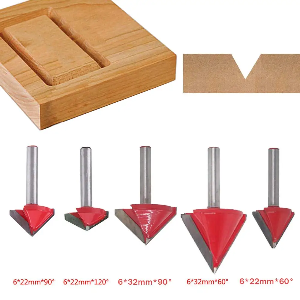 Набор фрез для гравировки по дереву, набор из 5 насадок (60 град. + 90 град. + 120 град.) Shank-6mm шириной-2232 мм, с ЧПУ