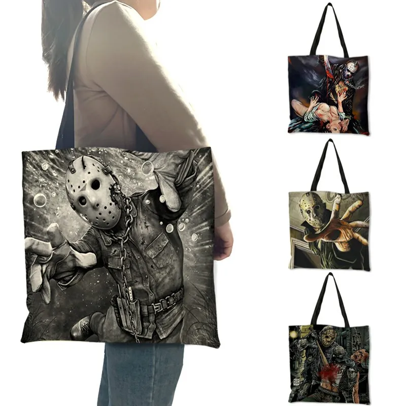 Персонализированная Льняная сумка-тоут Friday Jason для женщин и мужчин, креативные сумки на плечо, эко Льняная сумка для покупок с принтом