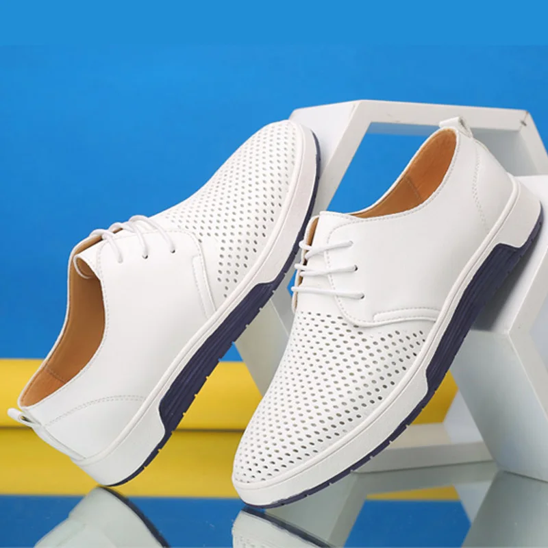 Туфли мужские летние из качественной кожи, Брендовые повседневные дышащие мокасины, без застежки, лоферы, Нескользящие кроссовки
