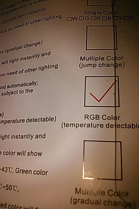 товар очень хороший,ничего ни свистит и не кряхтит.Работает как положено,горячая вода-красным цвет,теплая-зеленый,а холодная-синяя,так и полагается.У другого до этого покупал,мигает как гирлянда,говно полное,а ведь первая покупка была у него,а повторный заказ почему то продавцы отправляют брак и хрень.Лучше постоянно брать к разных продавцов.