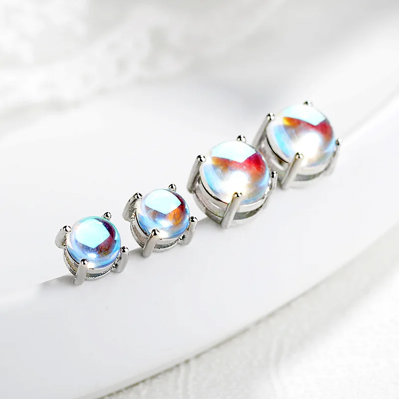 Серьги-гвоздики унисекс, серебристые, с радужным камнем, KAE137