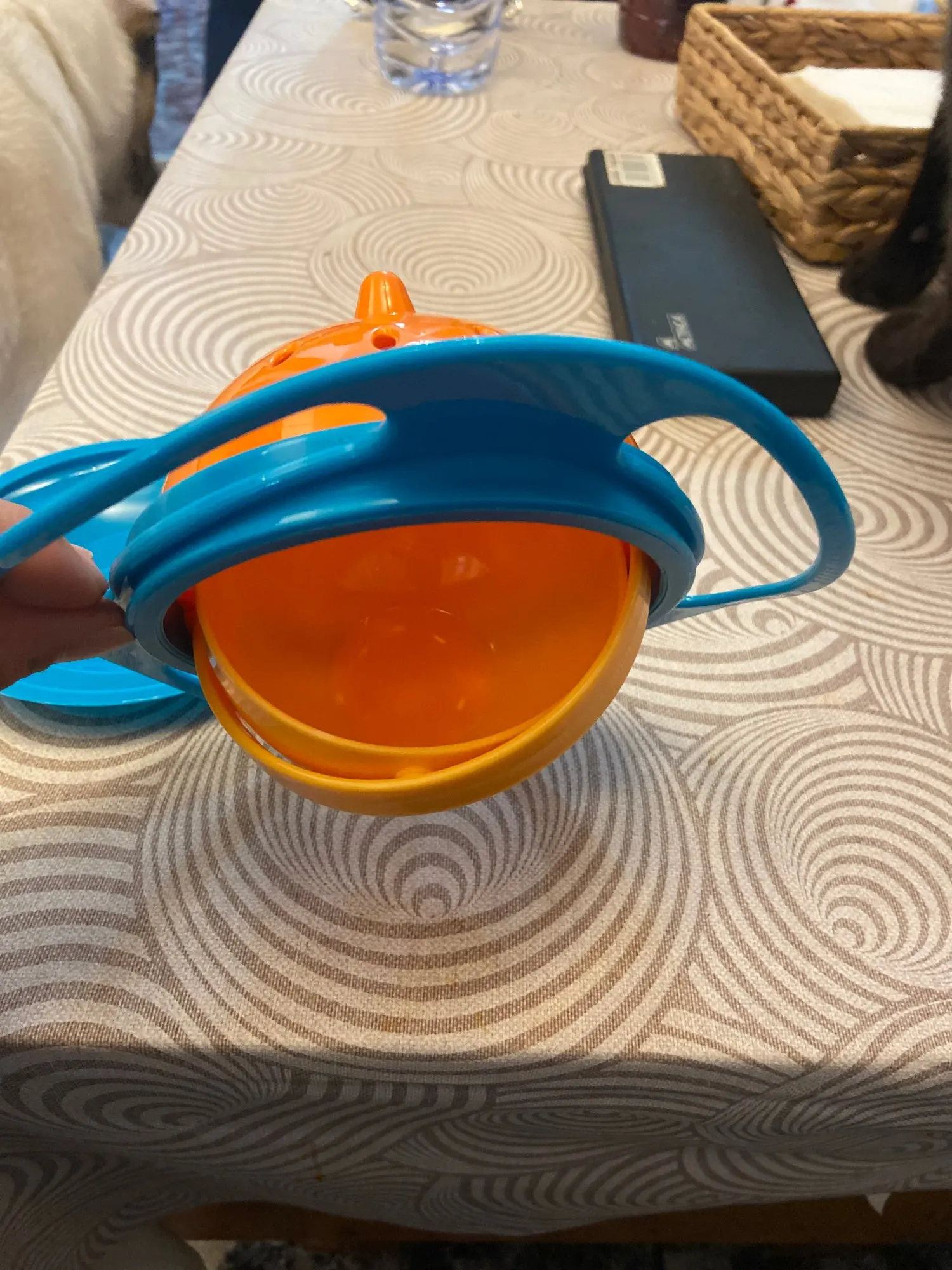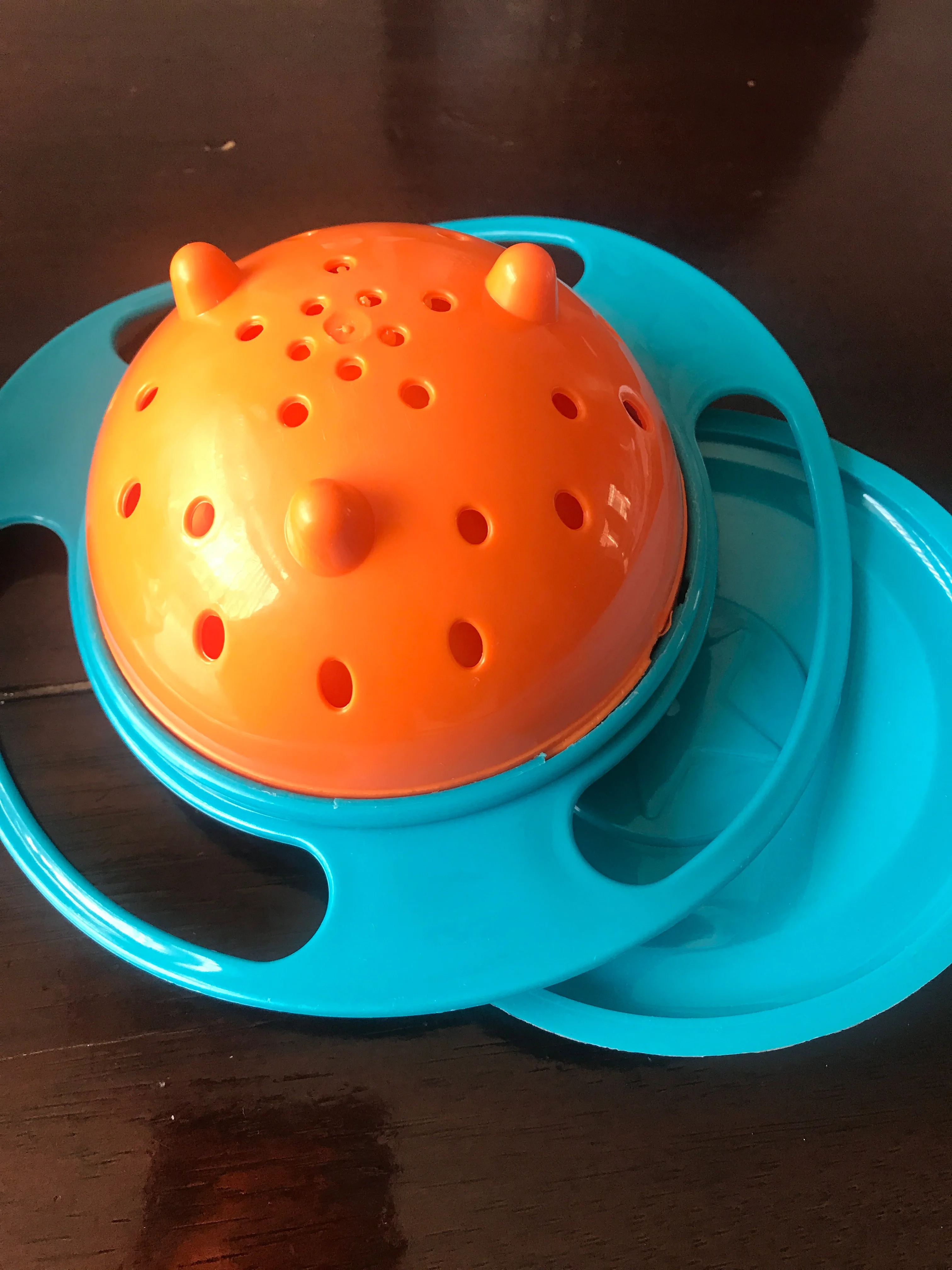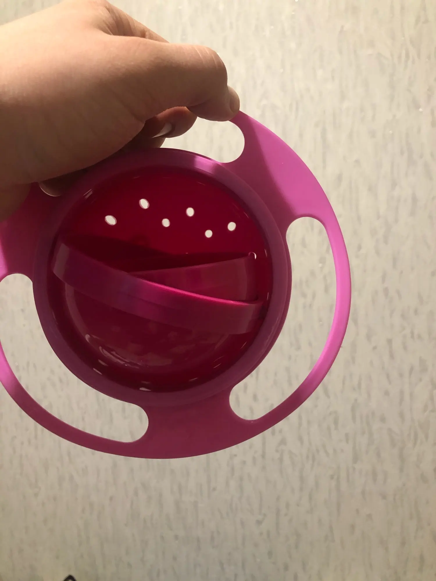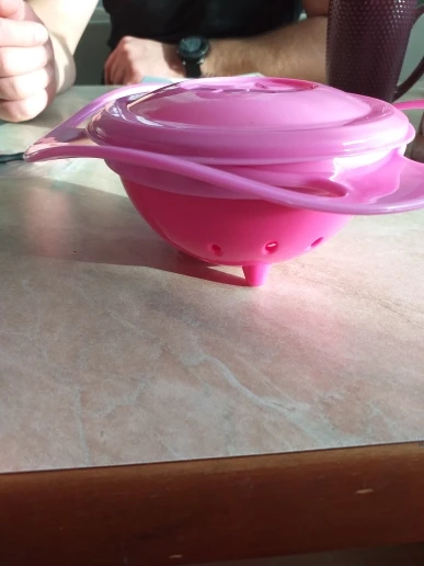 Очень красивое и функциональное блюдо, мой ребенок довольно беспокойный и только с этим блюдом она может есть одна, не будучи такой губительной. Это не безвредно, но это действительно работает, это маленький размер, но этого достаточно для хороших закусок или фруктов, и его очень легко держать от отверстий руками ребенка. Если я рекомендую его и все хорошо с продавцом