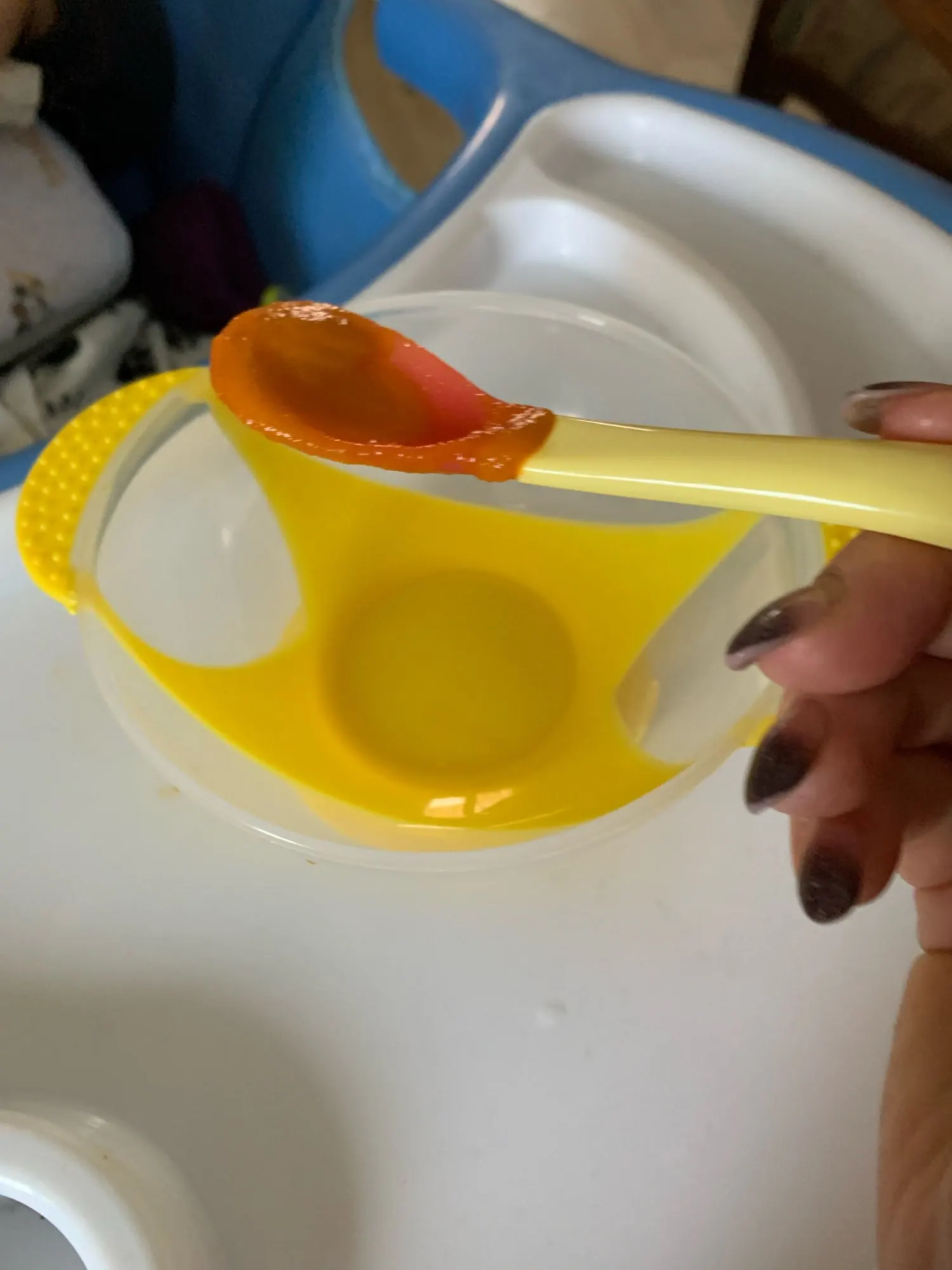 Очень хорошо для первой еды, как в описании, я рекомендую, ложка меняет цвет, когда еда горячая