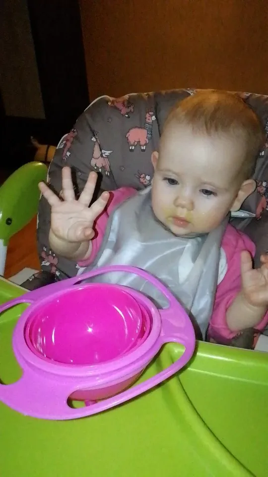 тарелка вроде хорошая но маленькая.и разбирается. боюсь что когда будет кормить она рассыпиться.
