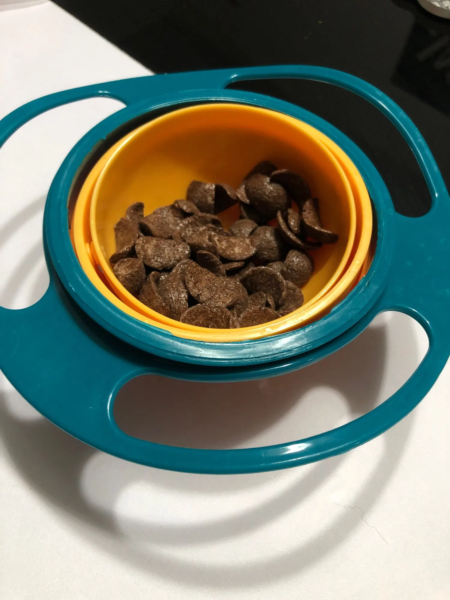 tamaño del bol pequeño. en algunos movimientos o agitaciones si que se vuelva hacia abajo