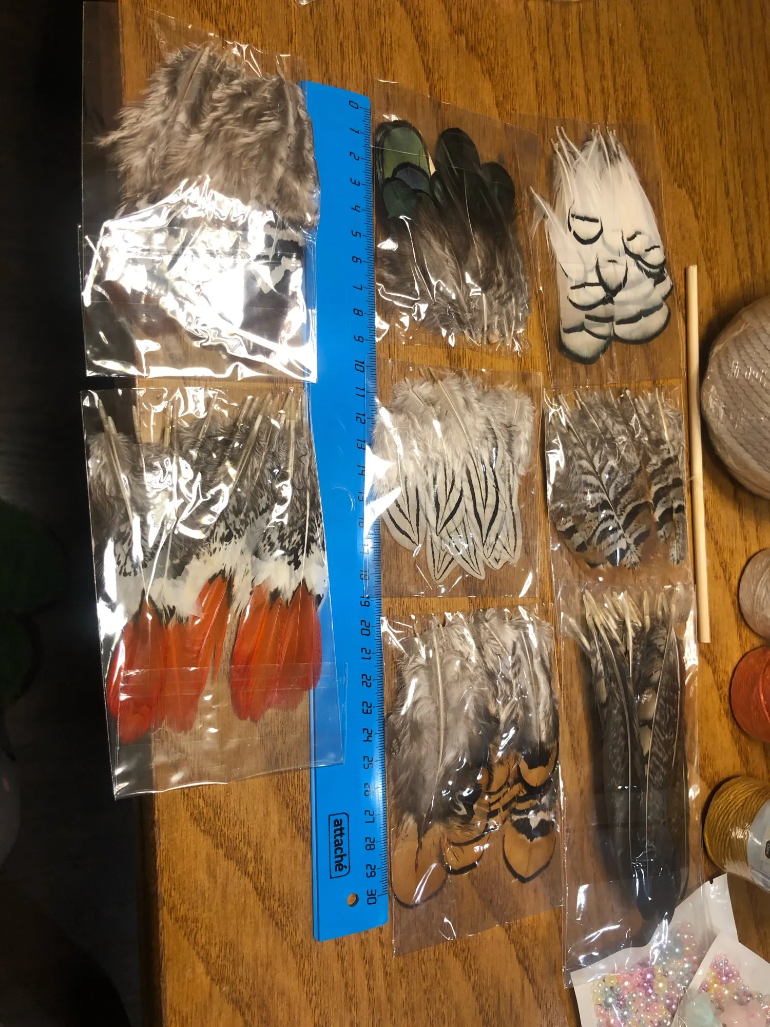 перышки шикарные размер от маленьких до больших Для декорирования и создания брошей просто супер. Посылка пришла за 3 недели, постоянно отслеживалась. Рекомендую