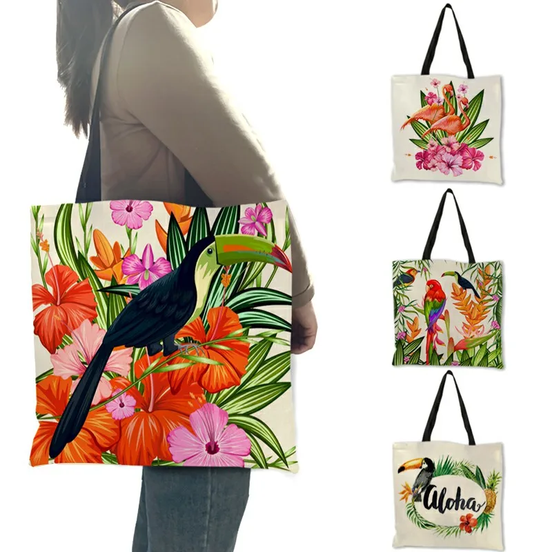 Сумки для покупок с красивыми птицами, попугаями и цветочным принто...