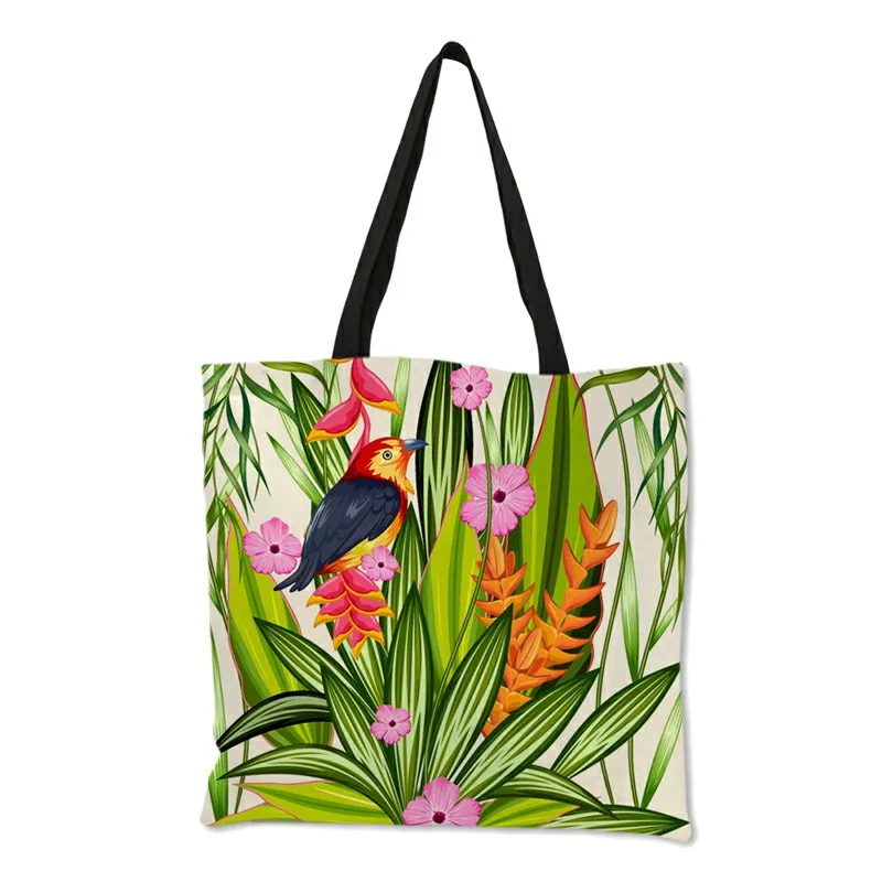 Сумка-тоут женская из эко-льна, саквояж на плечо с принтом тропичес...