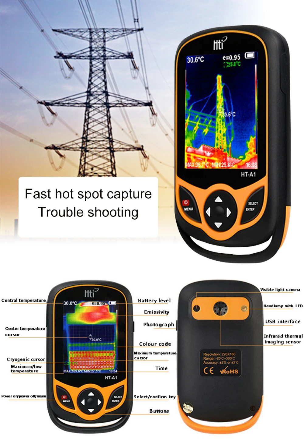 Карманная видеокамера портативная визуализация четкое измерение точный HT-A1/A2 инфракрасный термометр