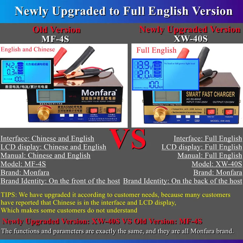 Старая версия (MF-4S) и новая Обновленная версия (XW-40S): функции и параметры точно такие же, и все они являются брендами Monfara.