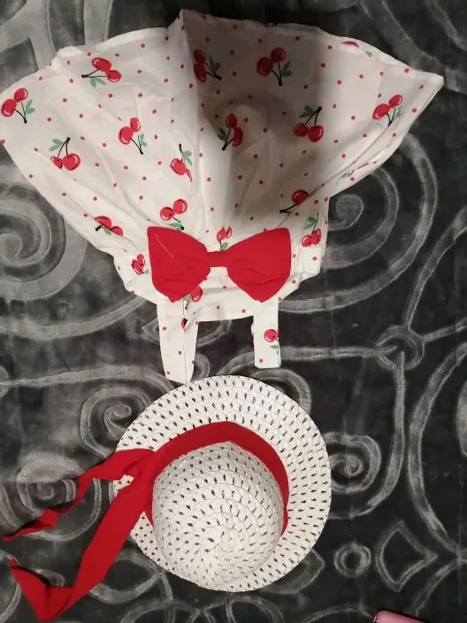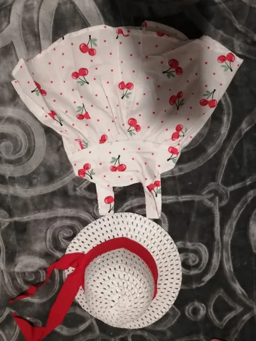Шапочку можно сразу выбросить, синтетика плохого качества. Платье очень тонкое и объемное, сшито несуразно, не так как на картинке