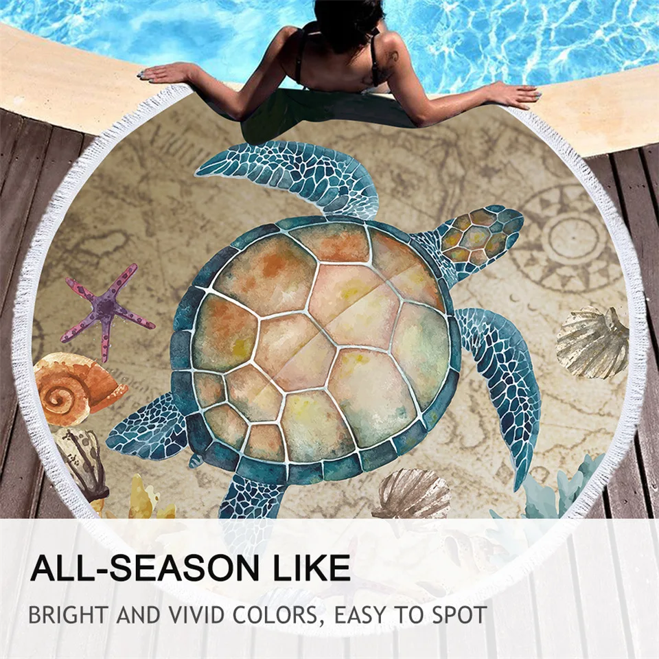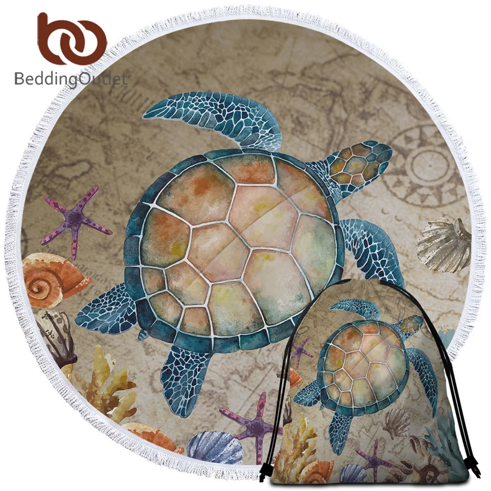 Круглое пляжное полотенце BeddingOutlet в виде морской черепахи, пляжный коврик в виде черепахи, Круглый Гобелен с круглыми морскими звездами, круглый коврик для йоги, 150 см