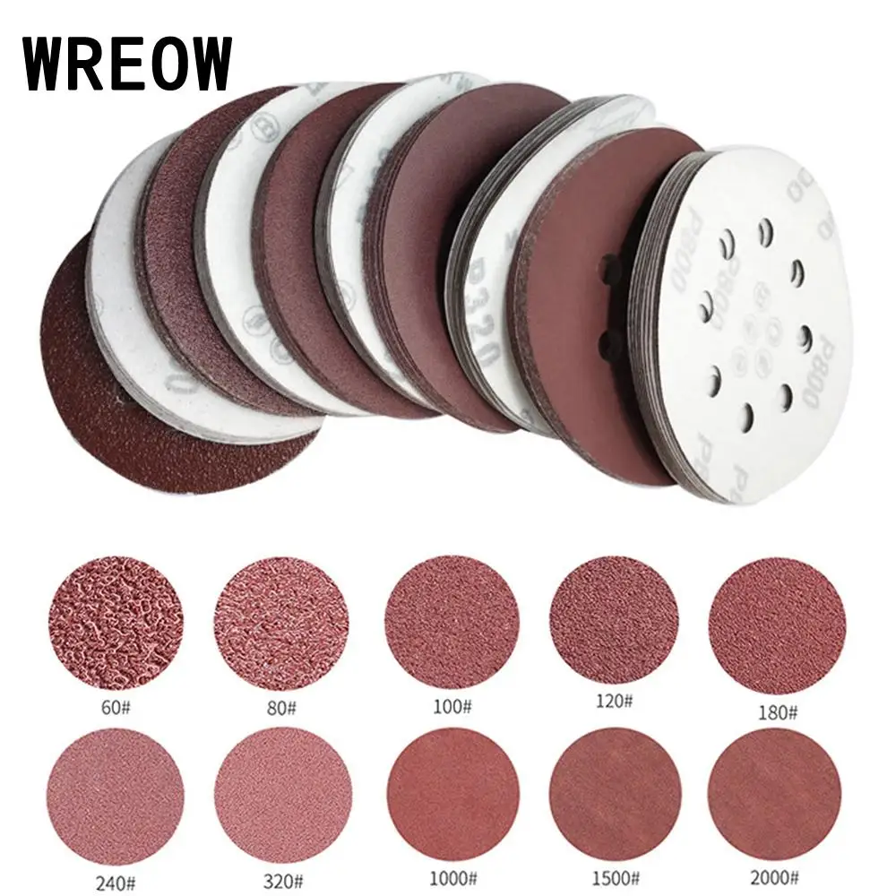 10 шт набор наждачных работ 5 дюймов 8 отверстий круглые абразивные Липучки Шлифовальные Диски