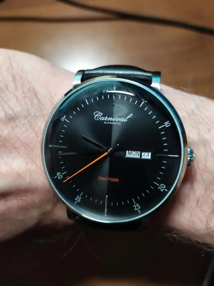 Очень хорошие часы! Нужно некоторое время, чтобы проверить точность. Вы можете услышать ротор часов во время движения запястья, но это не мешает. Большое спасибо продавцу за быструю доставку! Всего 2 недели, чтобы добраться до Швейцарии. Все продавцы должны принять ваш пример!