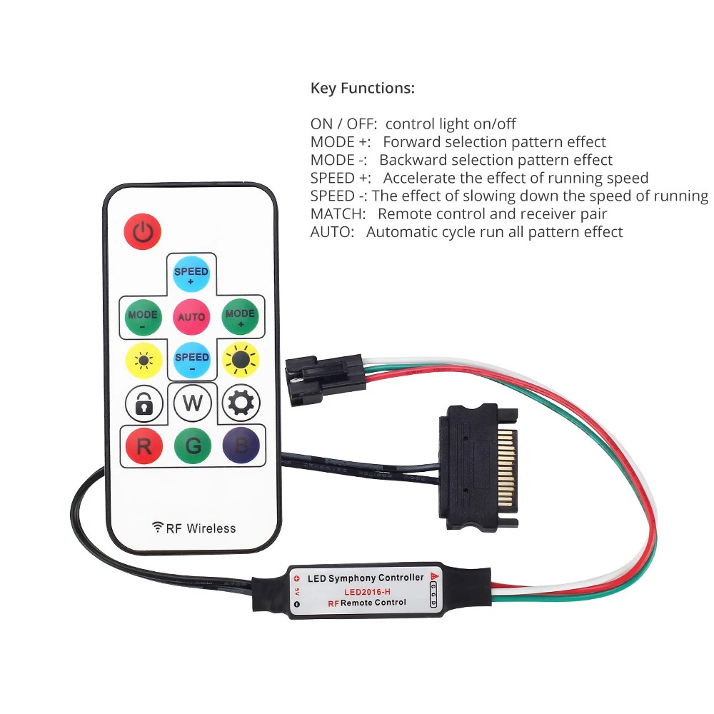 5 в 12 В 14 клавиш SATA интерфейс питания RF симфонический контроллер с пультом дистанционного управления для WS2811 WS2812b светодиодная ленсветильник